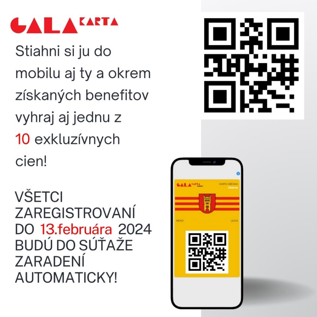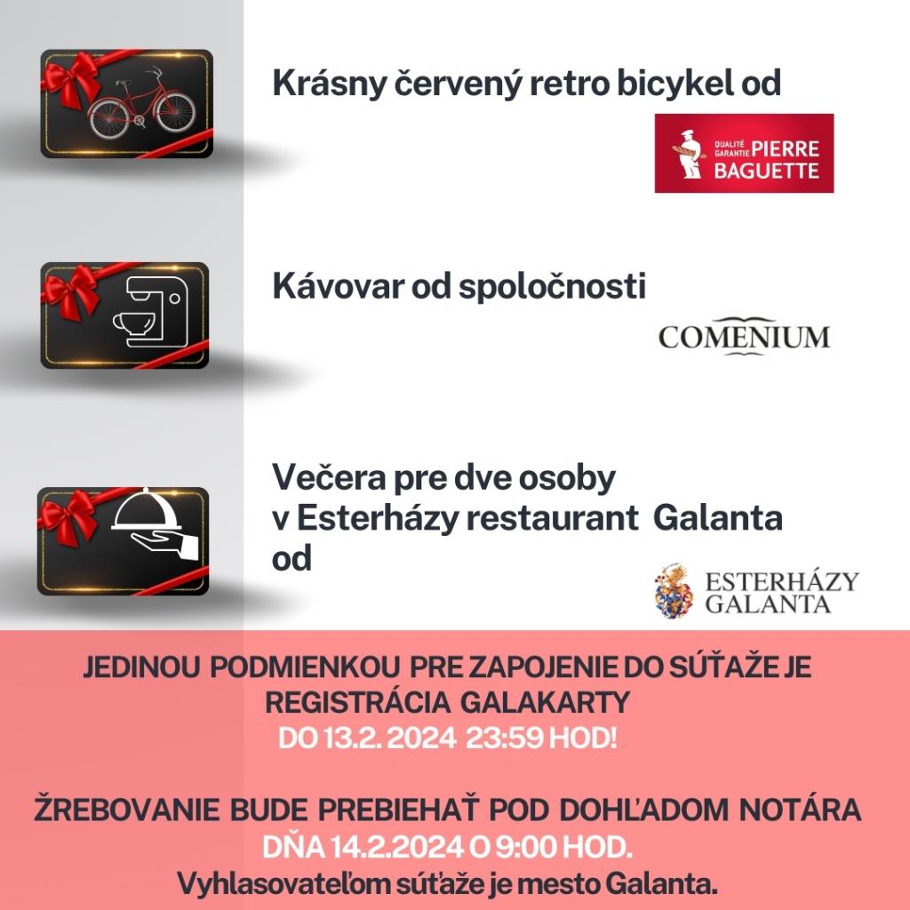 Každý, kto si zaregistruje GalaKARTU do 13. februára 2024 do 23:59 hod bude automaticky zaradený do losovania o 11 exkluzívnych cien.