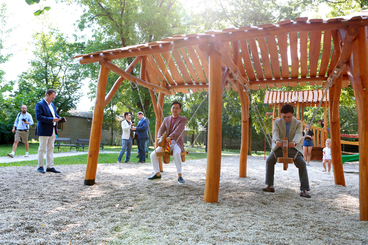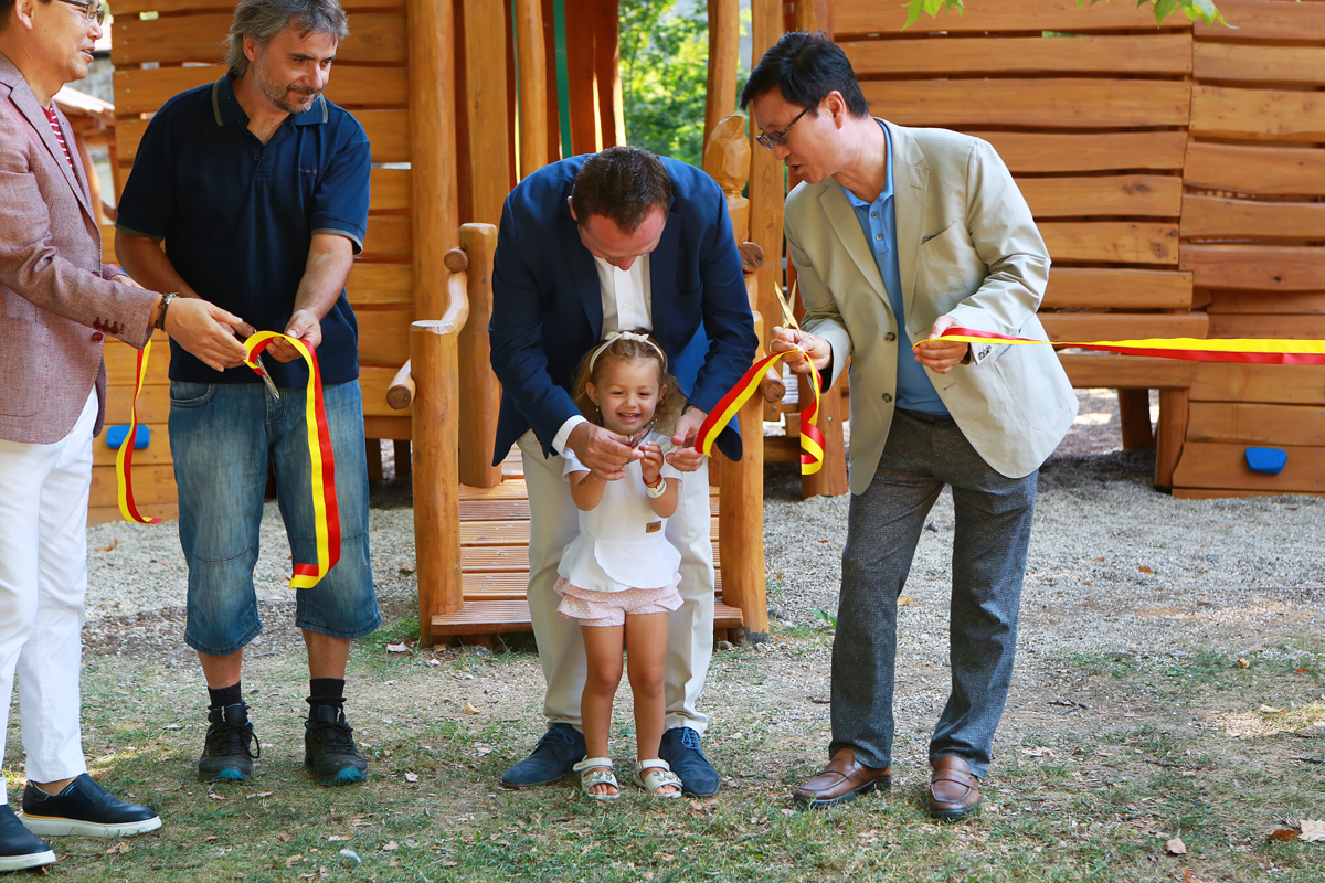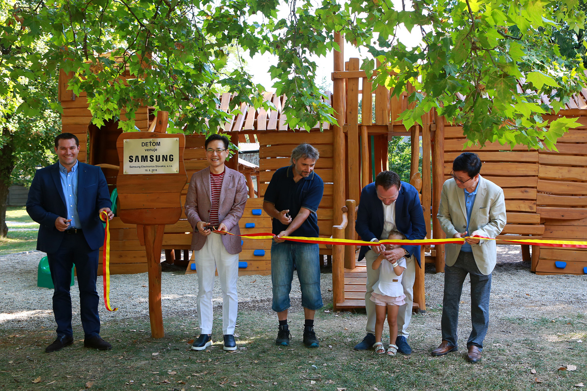 Vo fotogalérii vidíte otvorenie ihriska, stuhu strihá primátor mesta Peter Paška s dcérkou, vedenie Samsung Electronics - ChunJae Lee president, Kinam Lee managing president a tvorca ihriska Jozef Kliský.