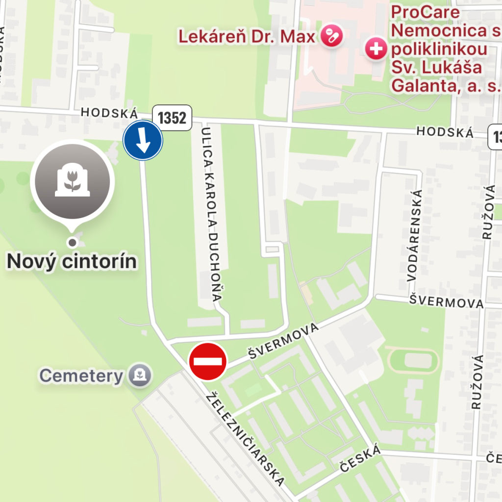 Príjazd na predmetnú komunikáciu bude možný výlučne z Hodskej ulice. Po skončení pohrebu budú vozidlá vychádzať v smere na Železničiarsku ulicu.
