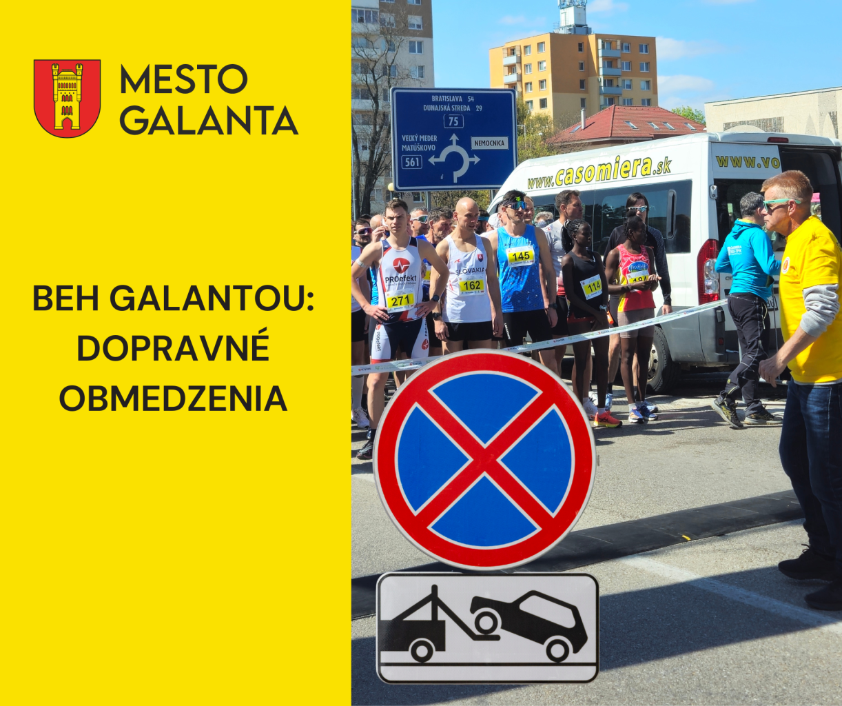 V súvislosti s organizáciou podujatia Beh Galantou – Beh oslobodenia bude na uliciach Hlavná a Parková platiť dočasný zákaz parkovania. Obmedzenie nadobudne účinnosť 17. apríla o 20:00 a potrvá až do skončenia podujatia, ktoré je plánované na 18. apríla približne do 17:00.