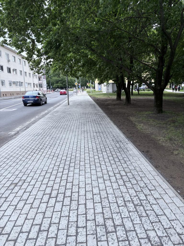 Okrem pokládky novej dlažby sa zrealizovali aj terénne úpravy a výsev trávnika, aby prostredie pôsobilo ešte príjemnejšie a upravenejšie.
