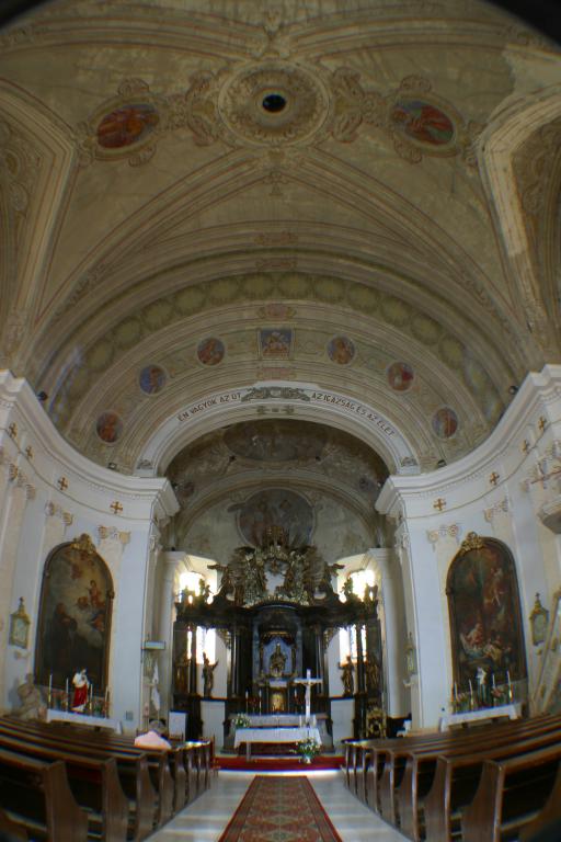 Kostol bol postavený v rokoch 1797 až 1800 a vysvätený v roku 1805. V jeho interiéri vyniká najmä vzácny barokový oltár, ktorý pochádza z hodnotného pôvodného zariadenia zo zbúranej barokovej kaplnky z roku 1741. Zaujímavosťou je aj renesančná tumba Ladislava Kubínyiho z konca 16. storočia.