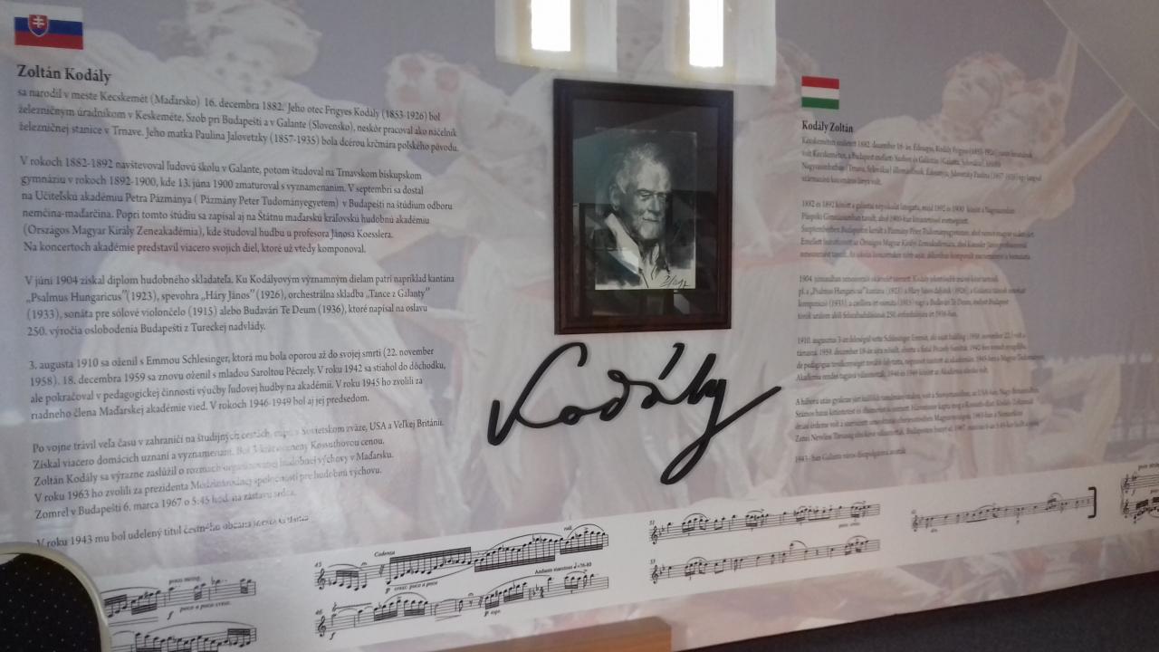 Zoltán Kodály (1882 - 1967) sa narodil v maďarskom Kecskeméte 16. decembra 1882. Detstvo prežil v Galante, kde v rokoch 1882-1892 navštevoval aj základnú školu. V štúdiu pokračoval na gymnáziu v Trnave a na budapeštianskej hudobnej akadémii, kde od roku 1907 pôsobil ako profesor. Ku Kodályovým významným dielam patrí napríklad kantáta „Psalmus Hungaricus“ (1923), opera „Háry János“ (1925), orchestrálna suita „Tance z Galanty“ (1934) alebo Te Deum (1936), ktoré napísal na oslavu 250. výročia oslobodenia Budapešti z Tureckej nadvlády.